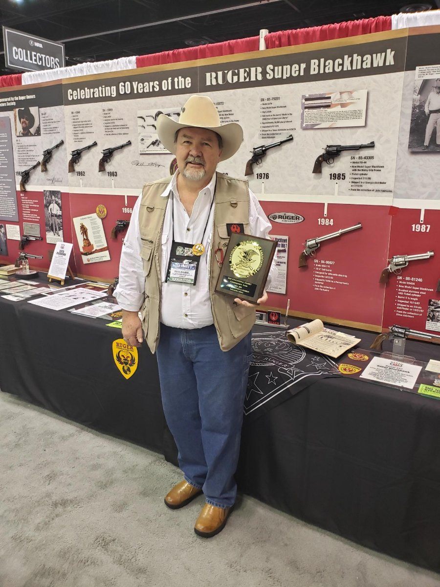 Steve Adamson's great display "Celebrating 60 years of the Ruger Super Blackhawk", represented ROCS at the NRA annual meeting this weekend in Indy. Steve's display won the coveted Best Educational Award in the Contemporary Arms category in extremely strong competition. He makes us all proud! You can see in another post that John Dougan's display representing the RCA also won Best Educational Award in the Contemporary Arms category, it is wonderful that our beloved Ruger Firearms receive such high recognition and NRA Awards!! Congrats Steve!!