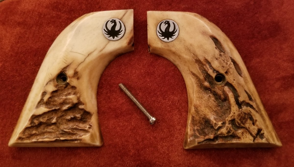 Your pair of factory sold stag grips are mighty tempting. They would look great on any Old Model XR-3 grip frammed Ruger. The color and conformation are near perfect. Good luck with your sale Bill. Brass Frame/Lee E