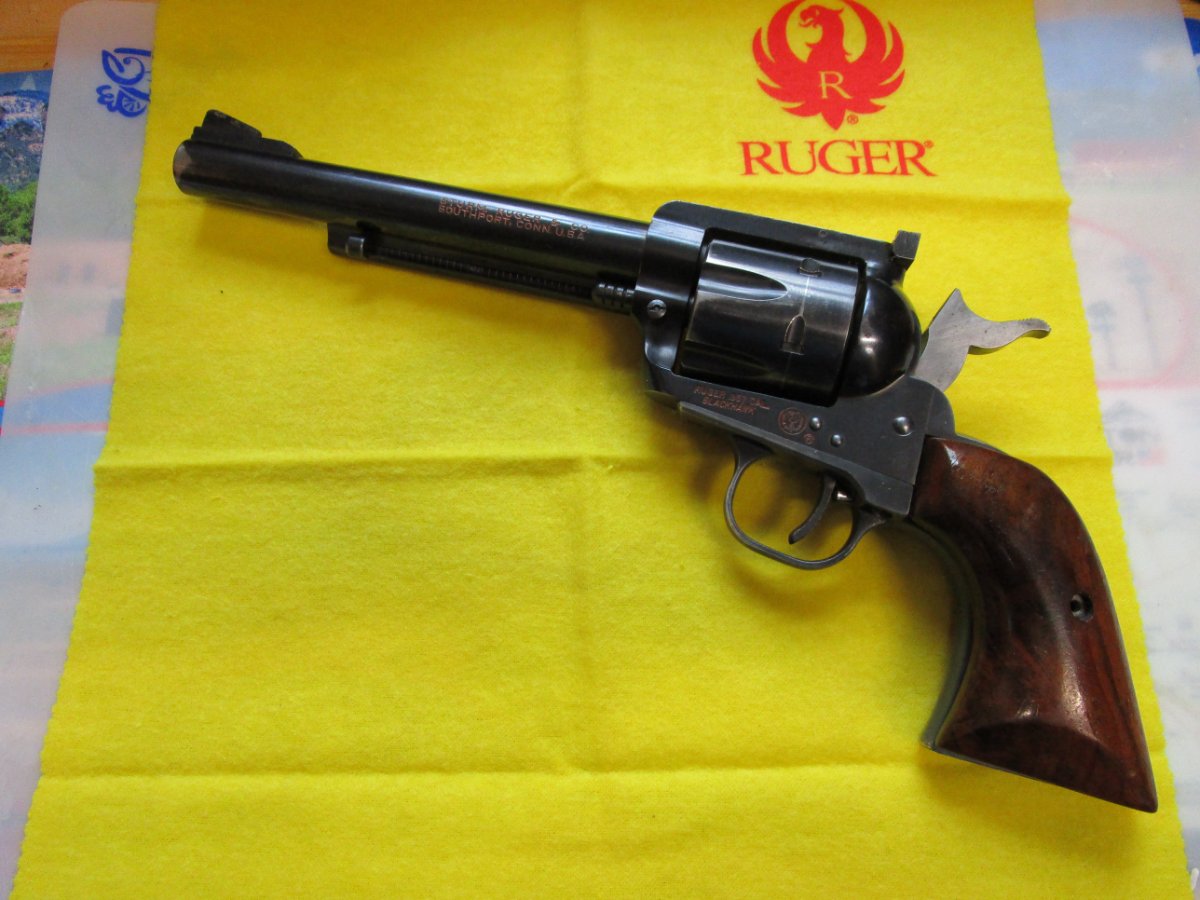 Single Six .22 Mag cylinder in the red felt bag, very, very good condition, no turn line, no numbers on front, solid rear, 1.625" length (probably will go up for sale)