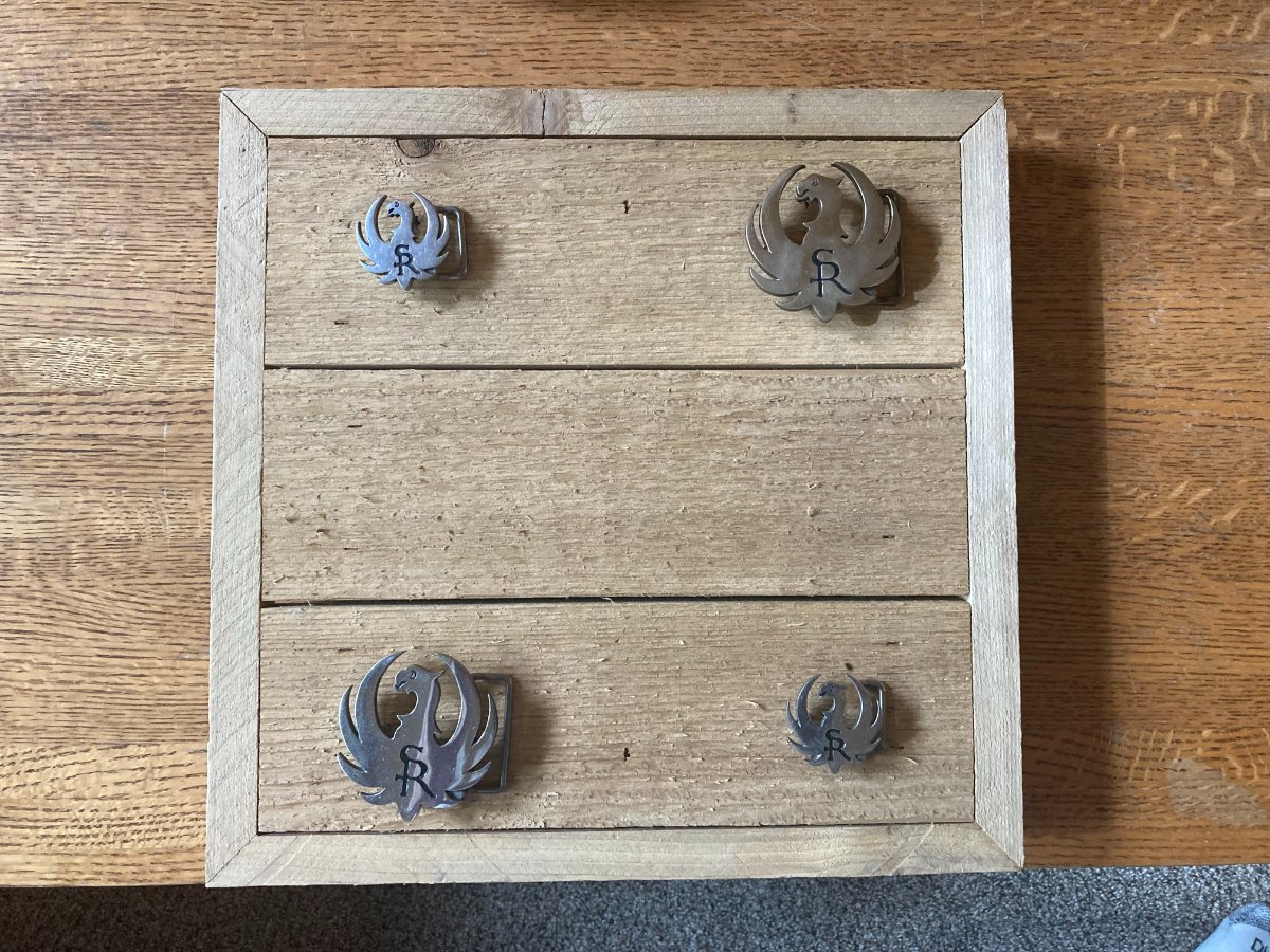 I know it's probably not going to be the easiest thing to come by but I'd like to find a Richcraft hood ornament to finish off my Ruger Richcraft shadow box Taryn is working on for me. The belt buckles just look lonely in there all by themselves.