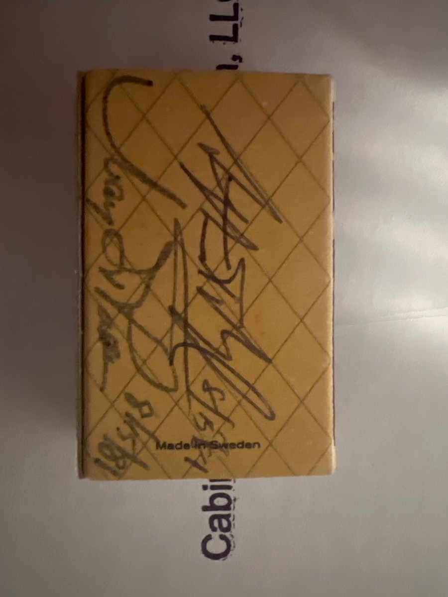 I’m trying to identify whose signatures these are. They are on the back of a gold wood pack of matches that were given out at one of the Christmas parties back in early 80’s.