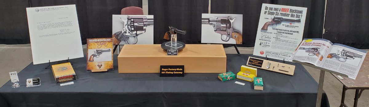 Displayed was the only Ruger factory made .357 magnum cutaway. The gun was made in 1957, shipped to a distributor and returned. Ruger then lend the gun out to the Fairfield Police department. The revolver was still in Ruger’s inventory when Walter Howe used it in 1984 to make a cutaway showing all the internal workings of the Blackhawk, including the transfer bar system.