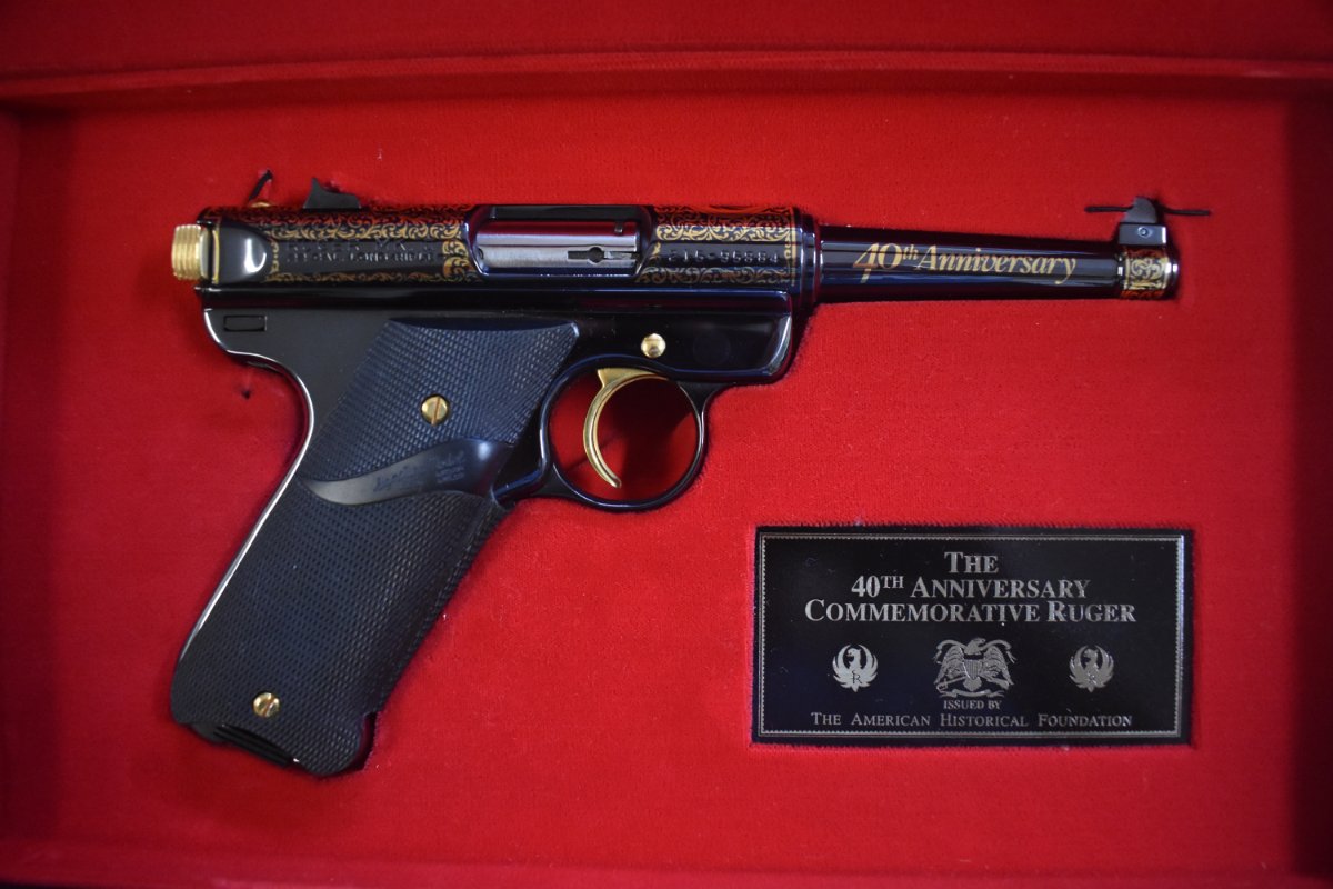 Recently purchased this 40th Anniversary Mark II. A previous owner had replaced the grip panels with a Pachmayr wrap around grip and the original panels were not with the pistol. I found on line gold pewter panels which match the style of the gun.