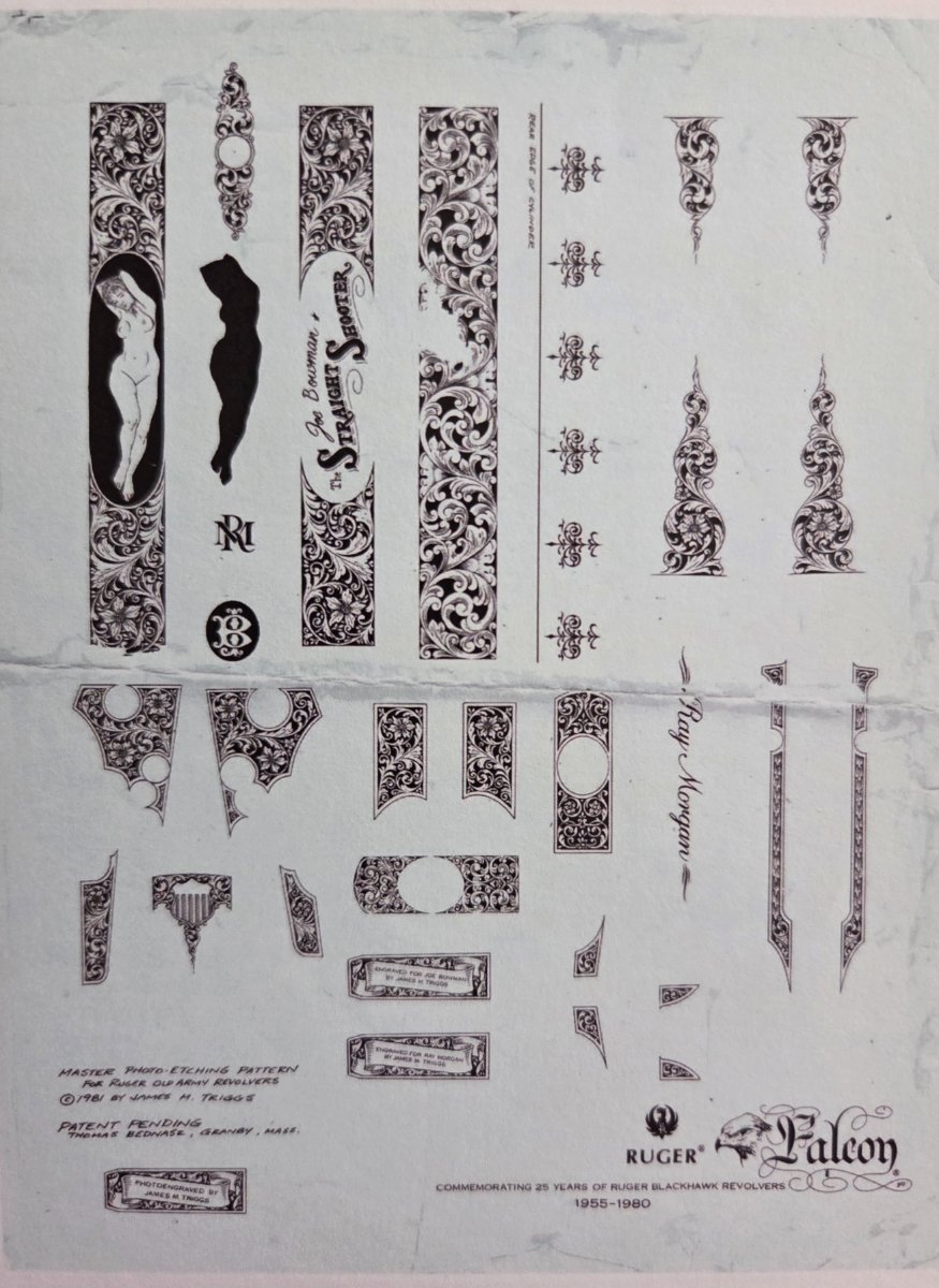 Last week I tried to reach out to Ray Morgan. His wife did call me back and let me know Ray had passed away a few years ago. We did have a lengthy conversation about the old days. She did remember the image of the nakid woman but not the pistol in question. I did know Ray and Triggs were best of friends. I knew about the Triggs drawings posted earlier that is why I tried to reach out to Ray. I am confident that the work done on this T512 was actually performed by Triggs. As for the reason, as this is just my opinion that I believe it was done as a gift to Bowman from Bill Ruger because Rugers name is also on the receiver. Thanks to all who volunteered their information regarding this pistol.