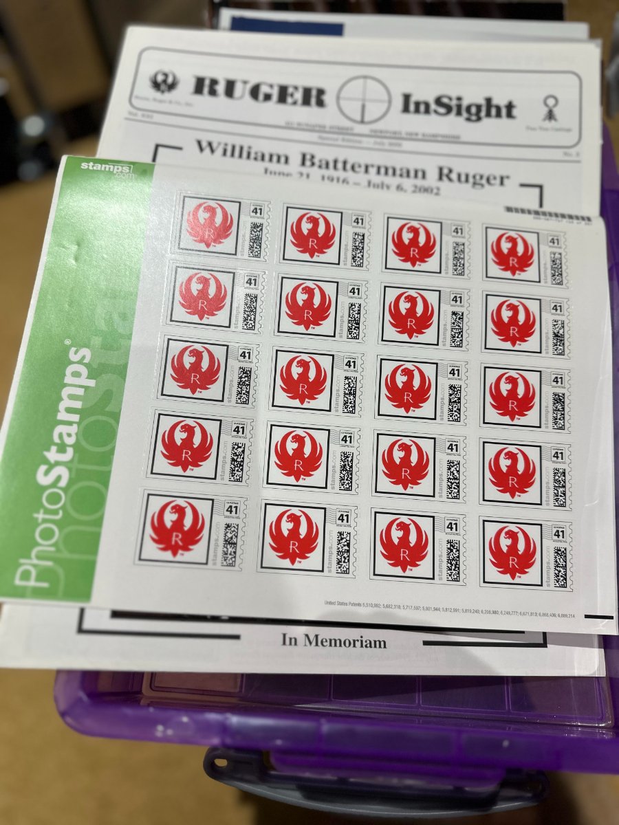 Sheet of 20 pcs. Ruger phoenix postage 41 cent stamps. Produced by Ruger Sales group for promotional mailings and this sheet was never used (but still good as stamps!)