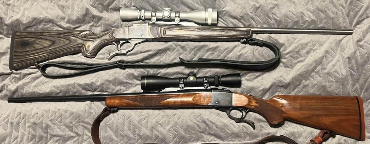 Then I learned about the No. 1's.... I had to have one in my hunting caliber, 30-06. Thanks to a member on rf.com, I was able to pick up a beauty, who thanks to USPS ineptitude, and a mistake in not sending an MO with tracking, I "paid" for twice. Both MO's arrived on the same day and since he had a pristine .357 Flattop with gorgeous wood that he was selling for the same price... well that's how I picked up my first flattop. Thanks to a member on rf.net, I learned they also made the No. 1 in stainless and laminate.... I don't know why that salt and pepper laminate calls to me, but it does.. a few months later: