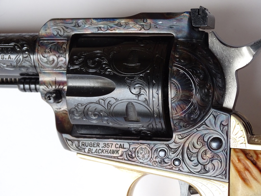 Just got this back from Tyler Gun Works. Fully engraved and case colored. I like to call it my SUPER .357 Blackhawk because I added a Super Blackhawk "Brass" grip frame, trigger, and hammer.