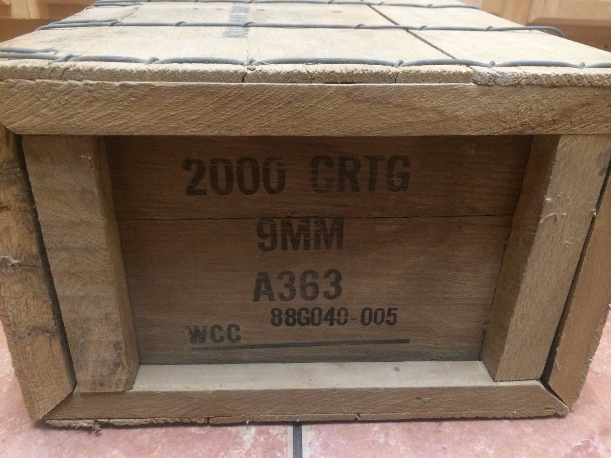 This is a wooden ammo crate that once held 2000 cartridges of 9MM M882 and was shipped for use at Sturm Ruger. I was able to fit it back together in original condition and lightly brushed it off with a slightly stiff paintbrush followed by a softer one. I think it's just awesome to sit on top of a shelf in my Ruger room. Thanks again, David.