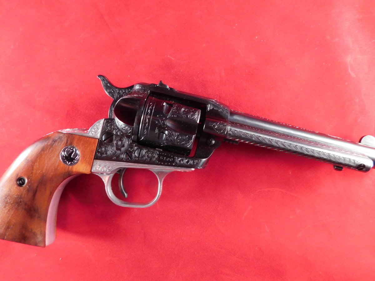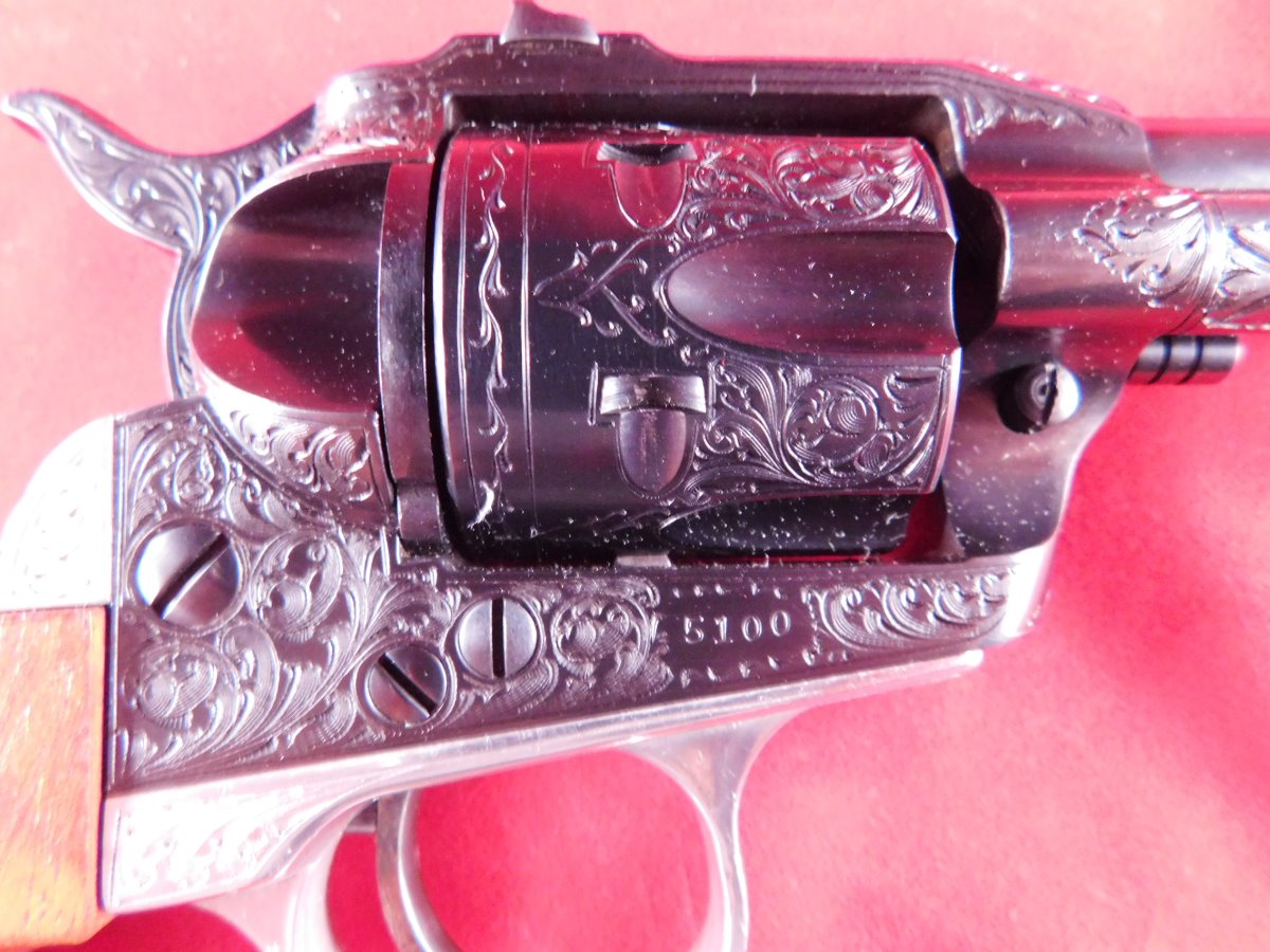 I was looking at a few of my favorites this past week and thought I would share a few pics of Spanish RSSE #5100 with you. It is the 1st gun in the group of 20 consecutively numbered Single-Sixes (#5100 - 5119) that Bill Ruger sent to Spain in December 1954 for engraving at the beginning of his engraving program. The "Spanish" are considered the holy grail of the RSSEs among collectors!! I am very fortunate to be the caretaker of this fine RSSE. Not the best pics but I hope that you will enjoy them.