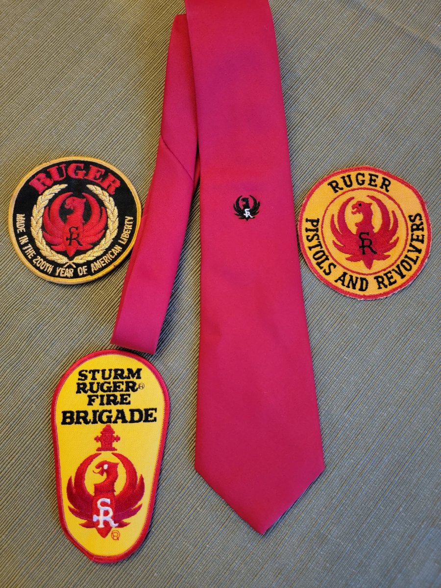 Thanks guys, Scootjr, I got it from a fellow off the internet, can't find my paperwork where from. Rick, those 3 are the rarest when it comes to Ruger distributed patches, I also have the 3 of them. Finding the 200th patch is like finding a unicorn, like the Fire Brigade extremely hard to find. Do you know the history on the tie, was it one worn at trade shows?