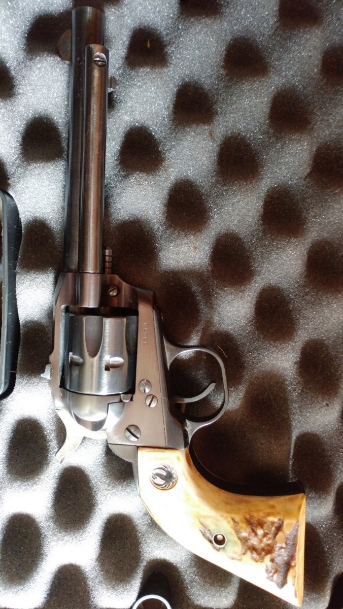 Just liberated this type 3 flatgate from CA jail. It came wearing I'll fitting Franzite grips but is now dressed in factory stags. Here are a couple of photos:
