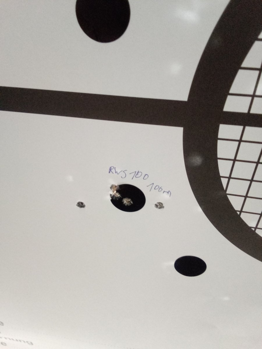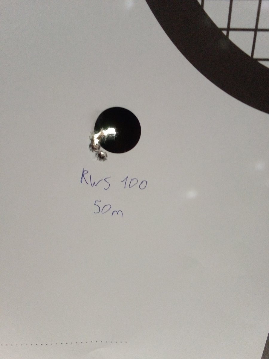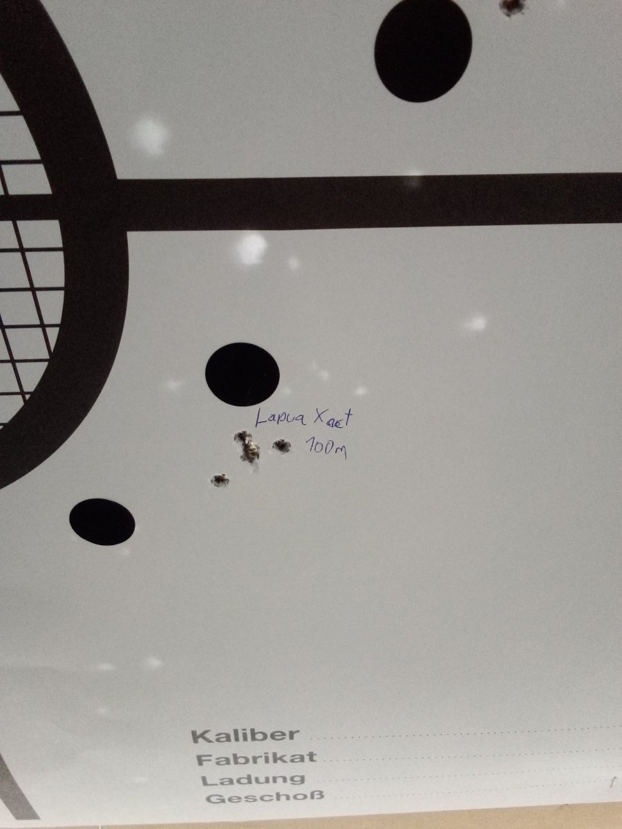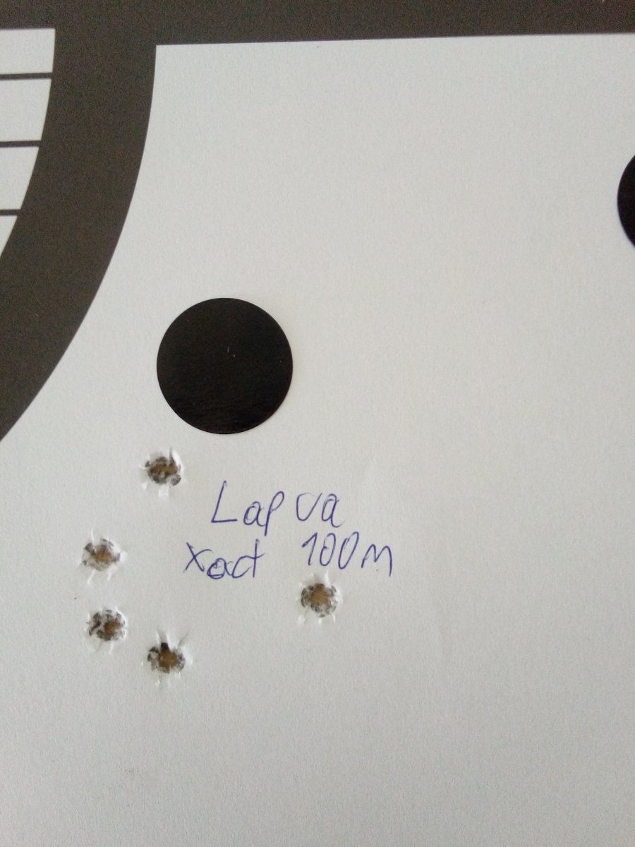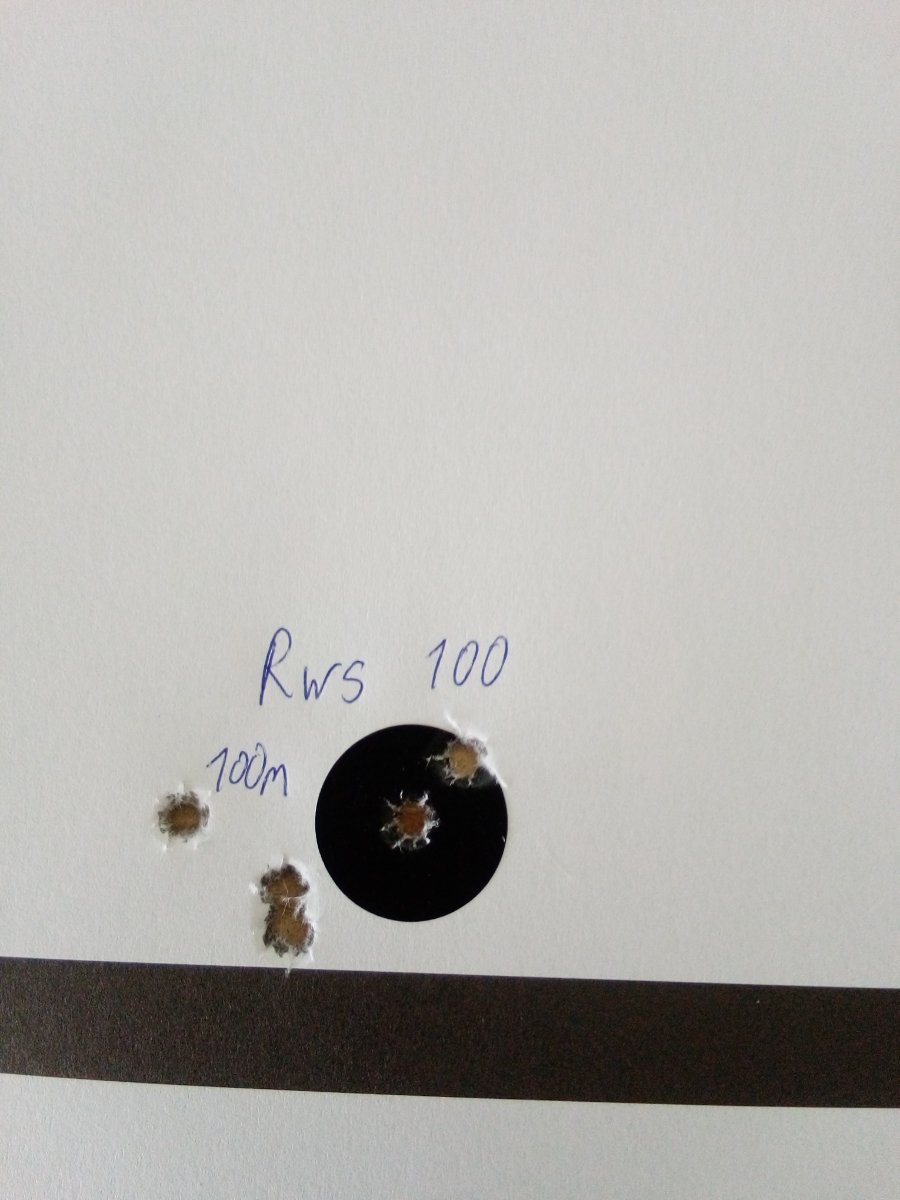 Nevertheless, I also shot at 100m or 109 yards and the shot patches serve as a size comparison.