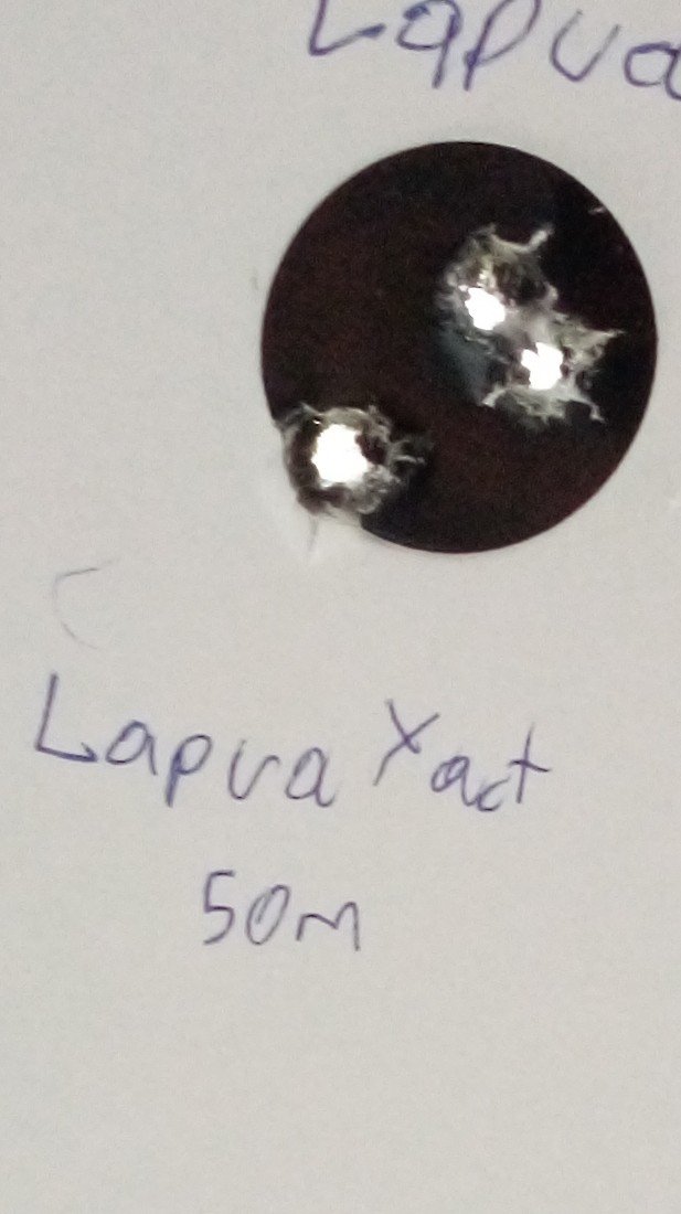 A few pictures of my tests today at 50 & 100 meters with 5 shot groups each. All groups were shot from the bipod while seated.