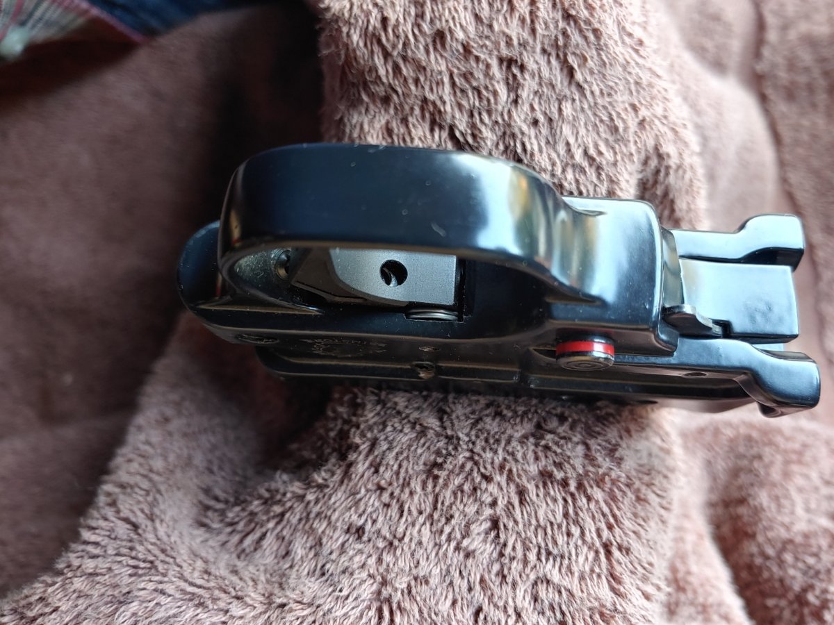 Another interesting bit is that it came with a trigger group from a company called Brimstone that is completely unique. The factory trigger return has been removed with the hole drilled-through and threaded for a set-screw trigger stop. Their trigger return spring is on the trigger pin and there is an additional threaded hole on the left side above the logo with a set-screw in it that may be part of that mechanism. I haven't had the energy to take it apart, yet. Must have been a costly upgrade but trigger pull is amazing and I'm glad to have it