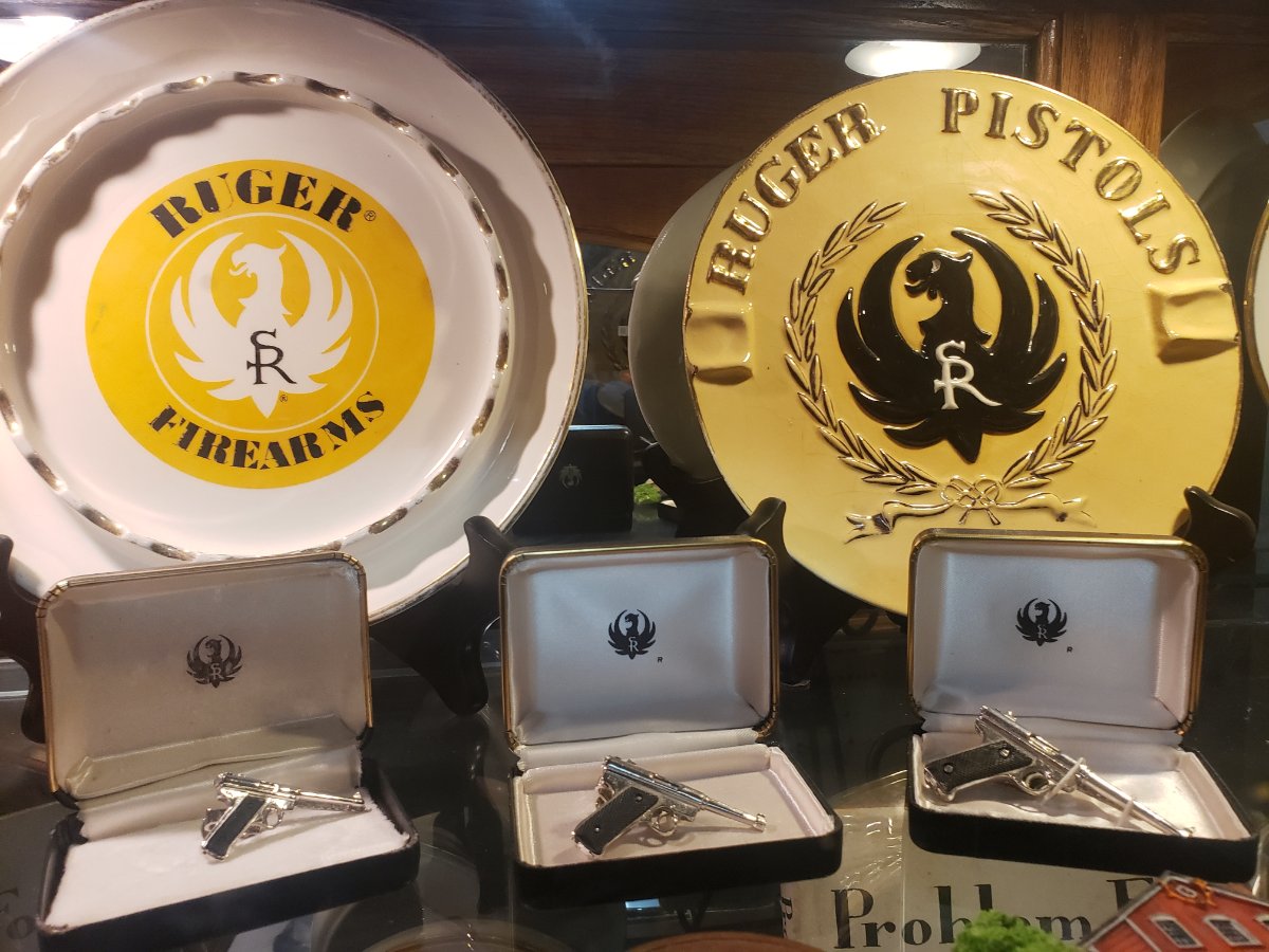 Those old Ruger pistol ash trays are a hard one to find. Look at the one on the left. It's missing the red color.