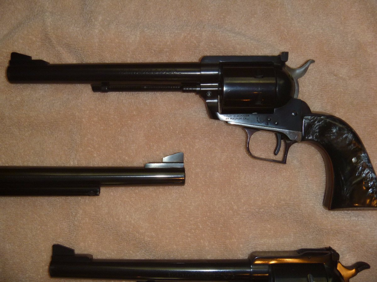 I'm Hoping to here from Ruger soon. Although based on what I've been reading, not sure if I will get all the answers I want. The Barrel, Cylinder, and cylinder frame all seem to match as far as Bluing goes and the slight wear on overall gun appears to be uniform and not redone. The grip frame definitely has me curious. As stated earlier, it is blued on the underside and on trigger guard. It is not blued on the leading edges of grip frame or the backstrap. Possibly intentionally done to "compliment" the aftermarket grips and give a two-tone effect??? I wish I would have asked more questions when I bought it but I was in my 20's and didn't know any better and the original owner has now passed..