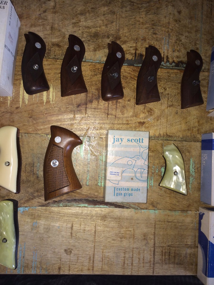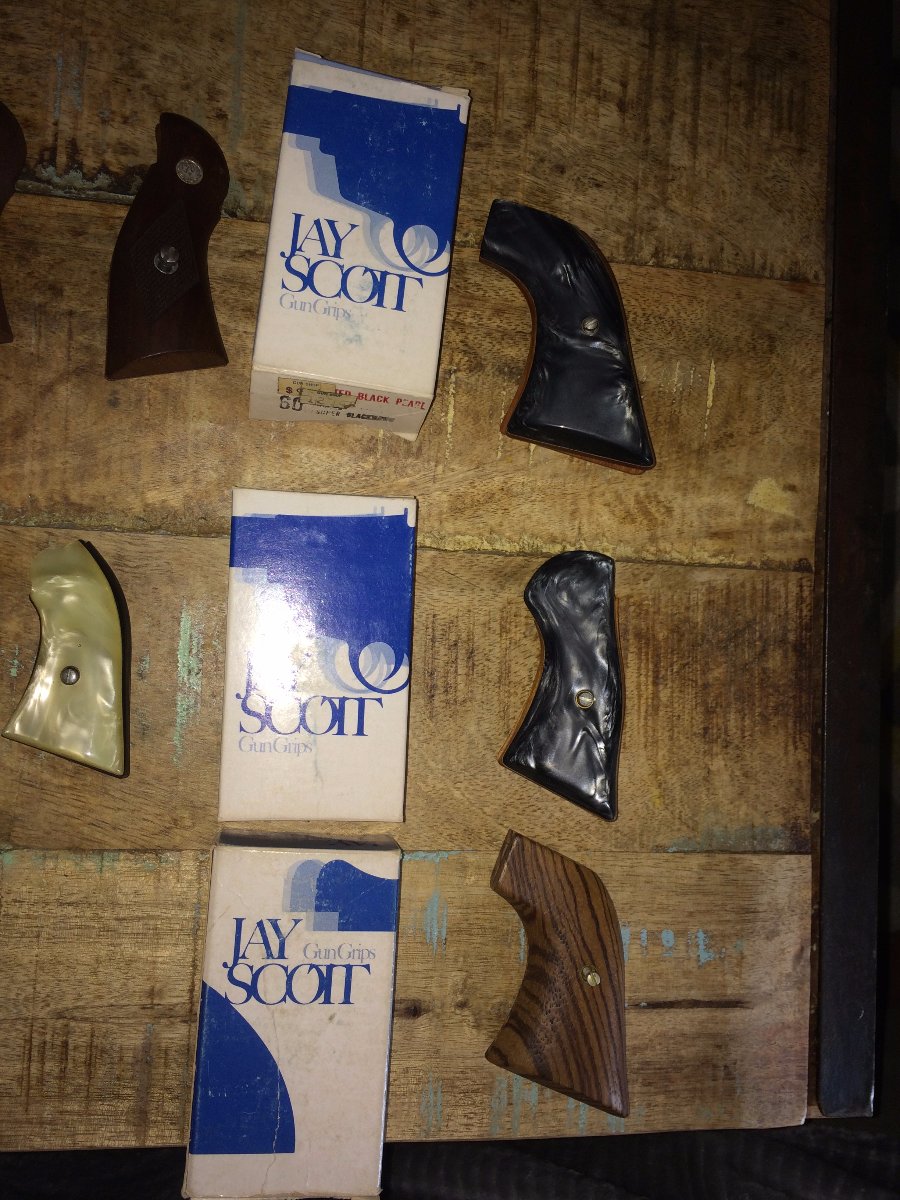 I picked up a small box of grips today. The lady only wanted $20 for all of these so I couldn't say no. 14 Pairs. Online, some say the Jay Scott grips don't fit right, are rough, etc. They needed a little rub down but are rather pretty in person. Please let me know what ya think.