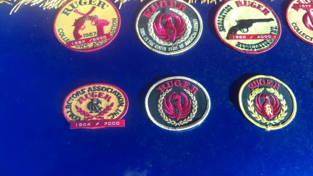 That is a great patch collection! I'm not sure if this early (probably 50's) brassard could be considered a shoulder patch. Probably made of light plastic, cloth material covered, 4 inches diameter. Ruger employees would pin this to their jacket as they manned the Ruger booth at NRA meetings/shows. Held in place by 4 pin fasteners. One is pictured in Wilson's big Ruger book.