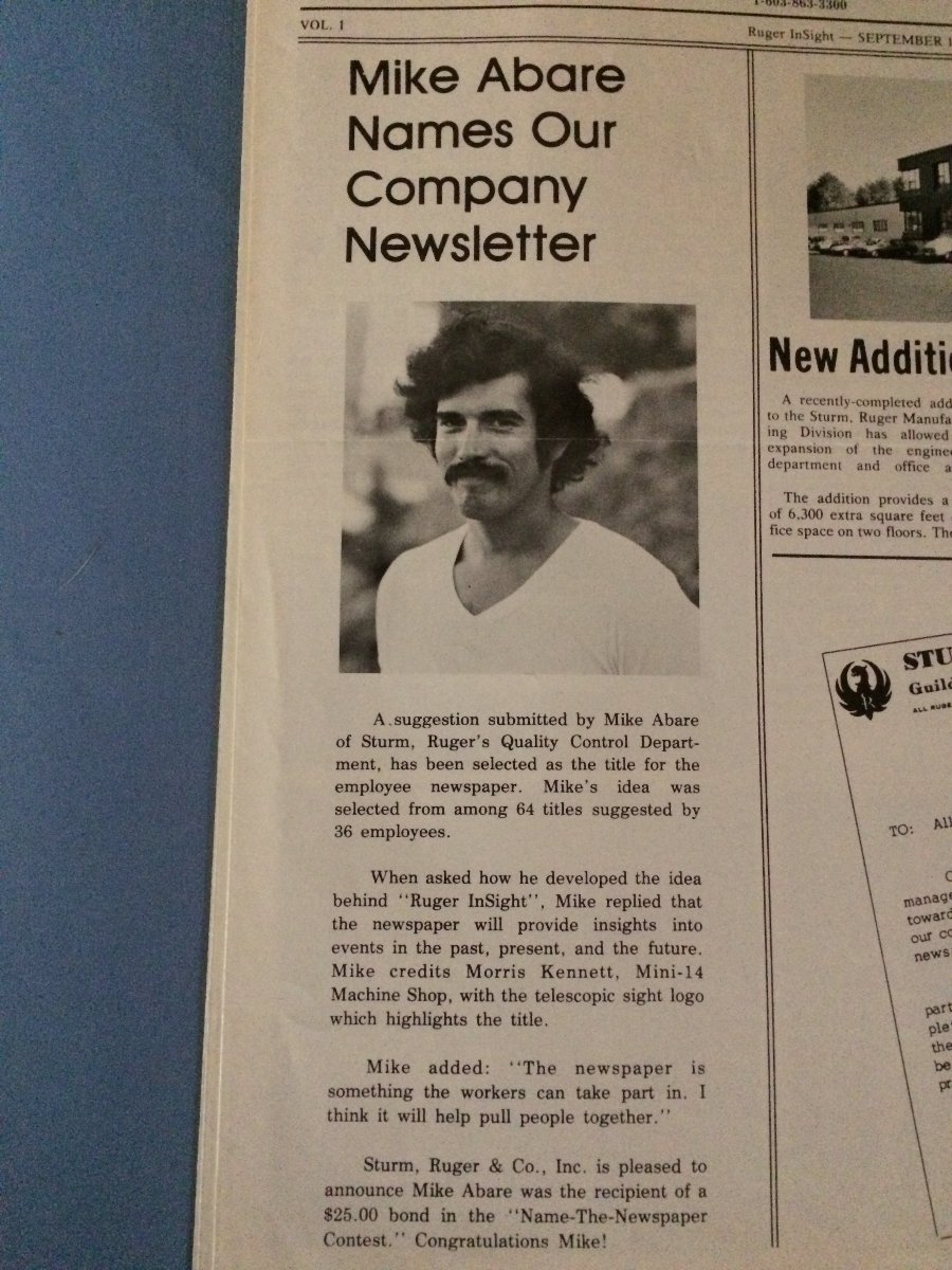 Hi, I am Michael Abare! For those that remember me from the years I worked there at Strum Ruger will remember that I was the person that named the ruger in house paper! It was published I the first paper anyways! I now wish I had kept the savings bond I received for naming the paper!