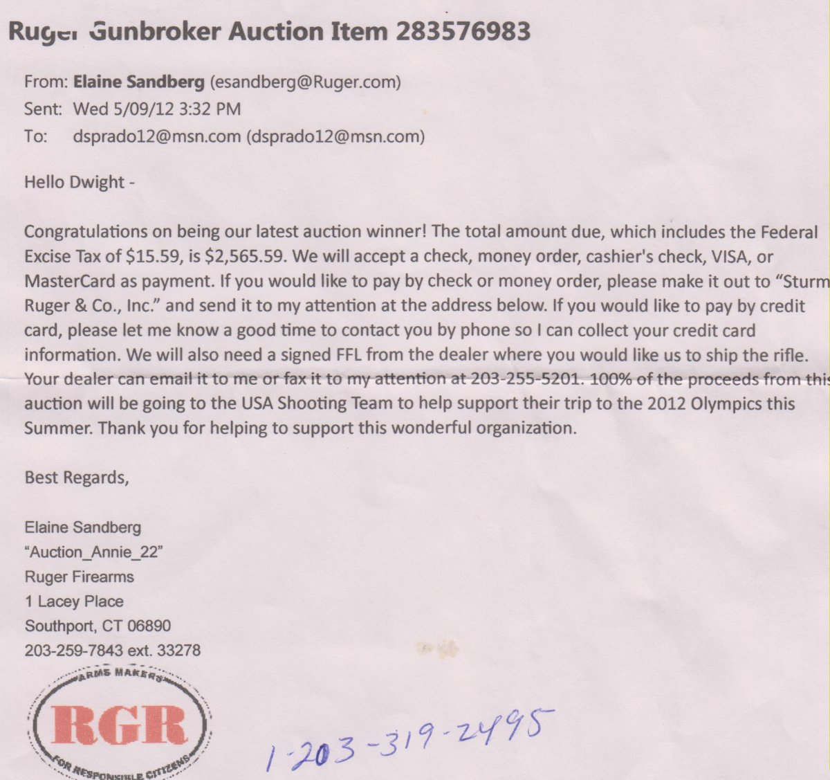 He originally bought it on GB in 2012 from Ruger as shown by the invoice and auction listing he sent me.