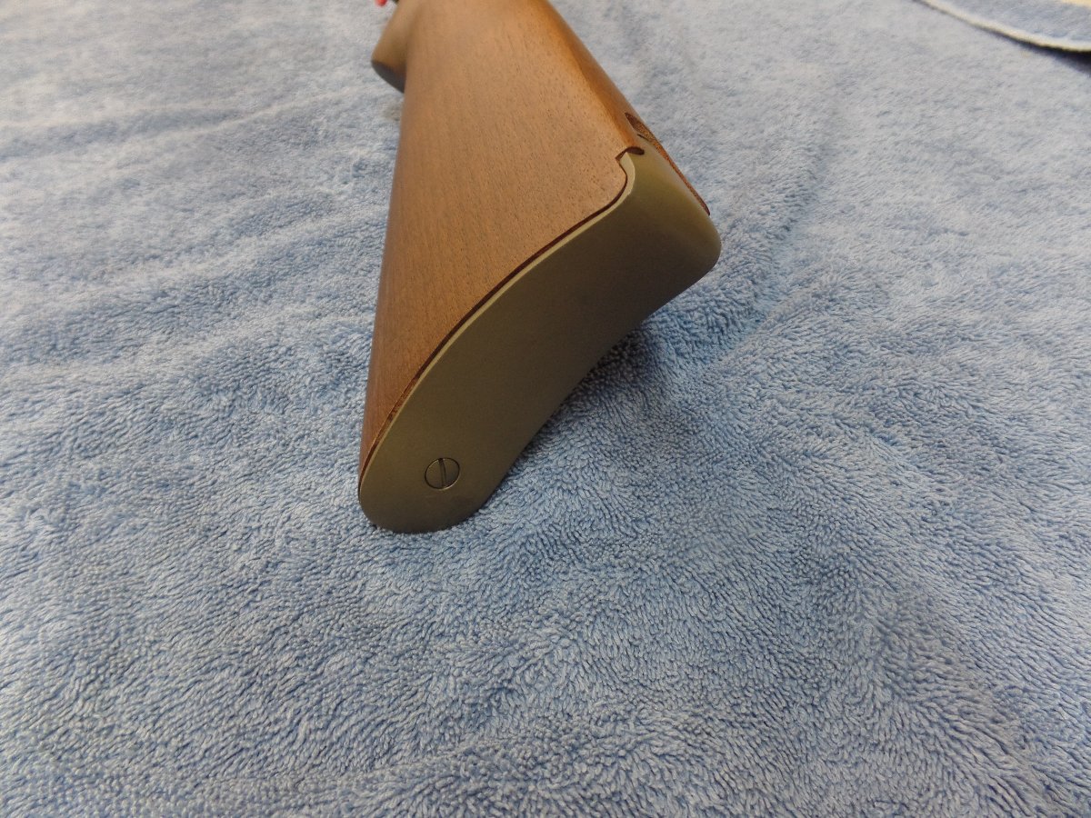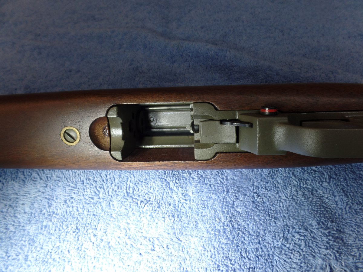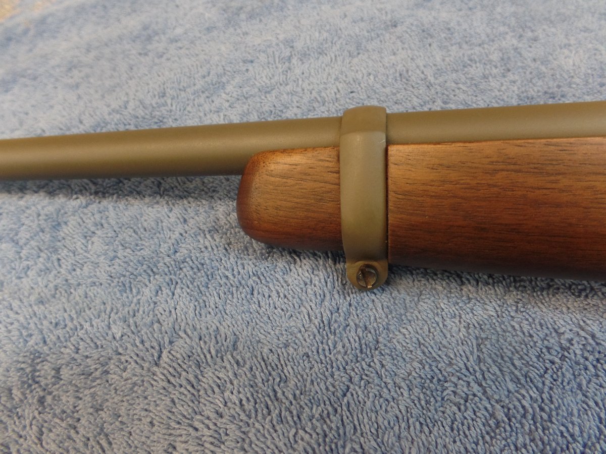 All of my collecting experience comes from Numismatics and counterfeits of rare coins is something the hobby fights constantly, so I was a bit learey about this one. Talking to Charlie he told me "you can't fake a serial number" , so I bought it. All the metal pieces, butt plate, barrel band, trigger housing, receiver & barrel are coated green.