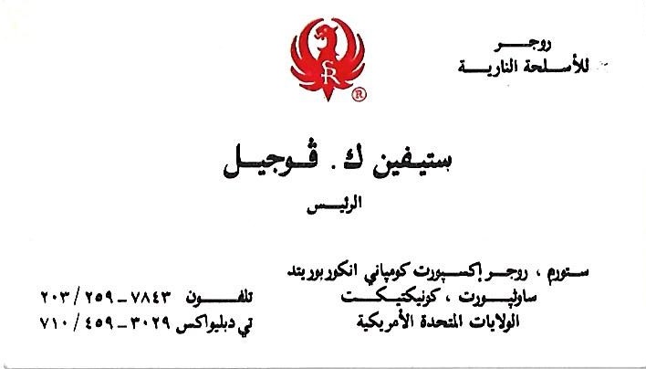 This is a Ruger employee's business card. Who can read it? This employee is now deceased.