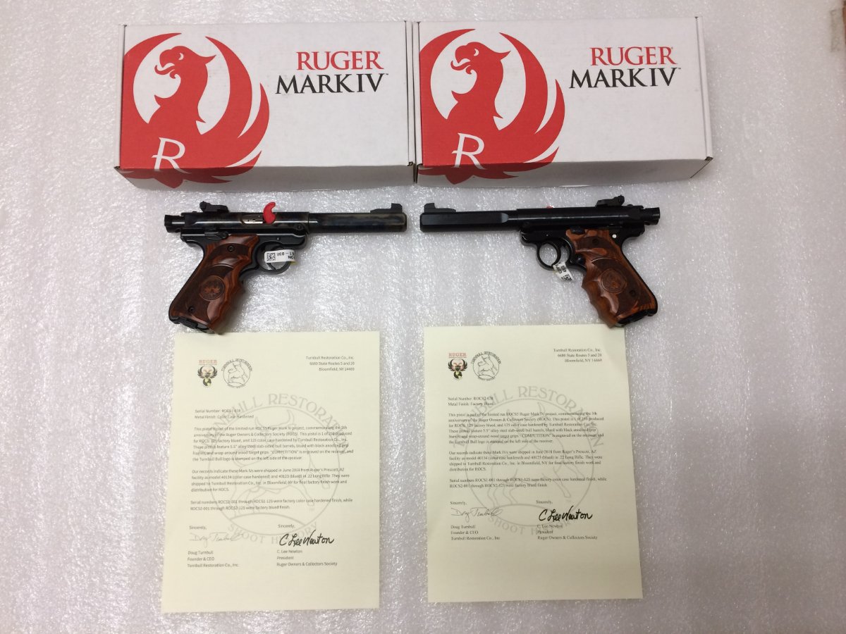 This is my pair of the latest ROCS Mark IV offerings from Turnbull. They were just sitting there all last week waiting on me to come take em home. I apologize for the photo quality as I was not able to capture the beauty of the color case hardening with my phone. These two are a beautiful pair of safe queens. Tasteful and extremely well done!