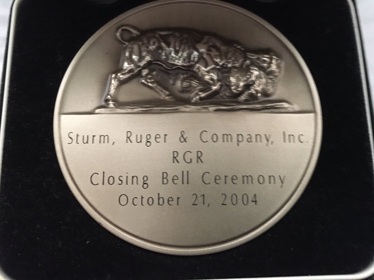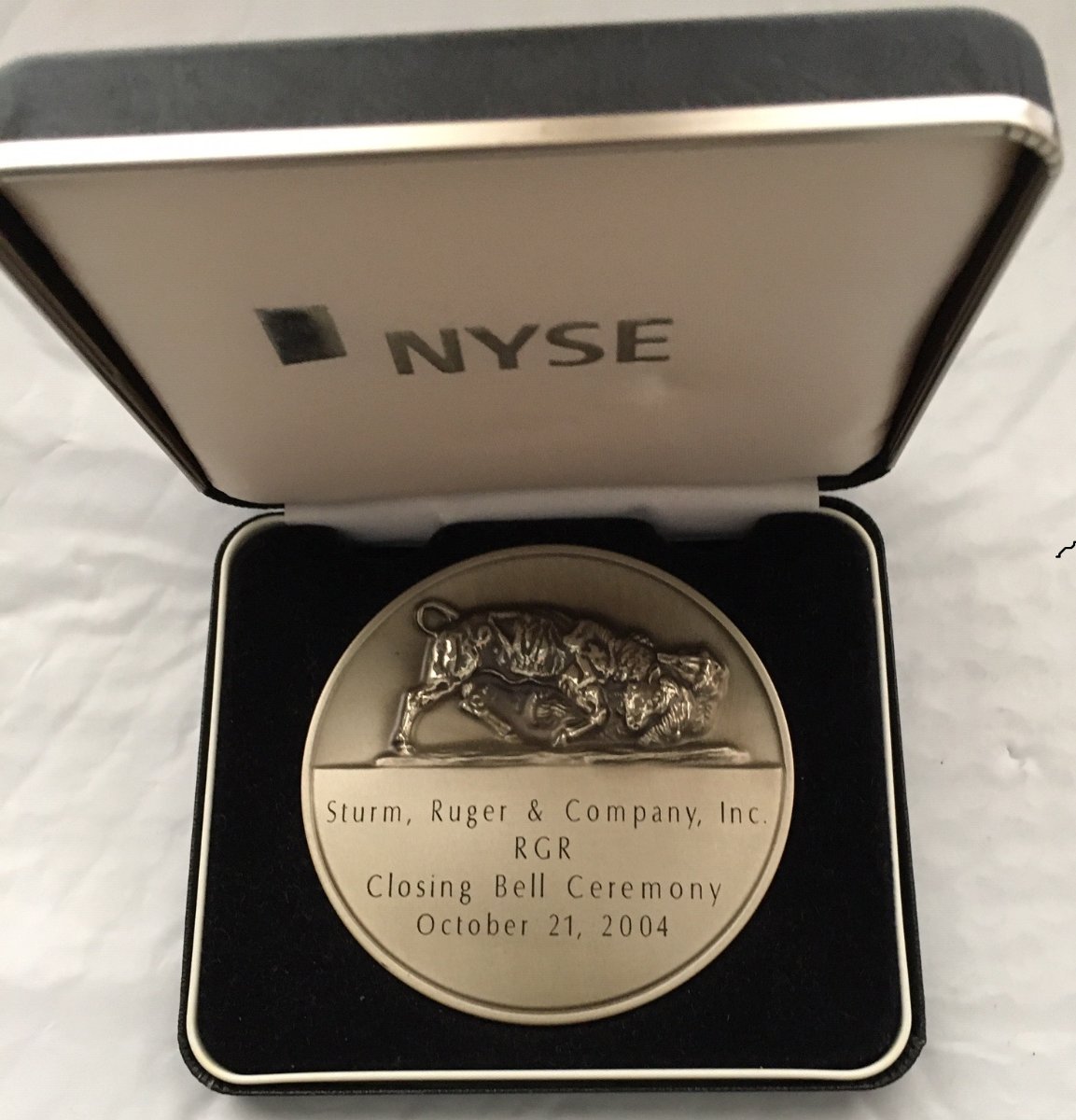 SOLD New York Stock Exchange commemorative medallion presented to Sturm, Ruger & Co. Large, heavy, 3 inch medallion. One of a kind. Hard case. For the memorabilia collector who has everything. Mint. SOLD! shipped. donfindley806@gmail.com Money back if not completely satisfied.