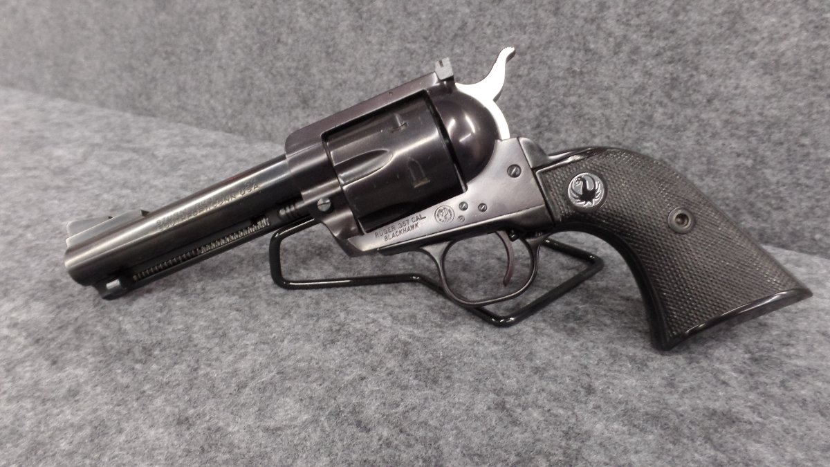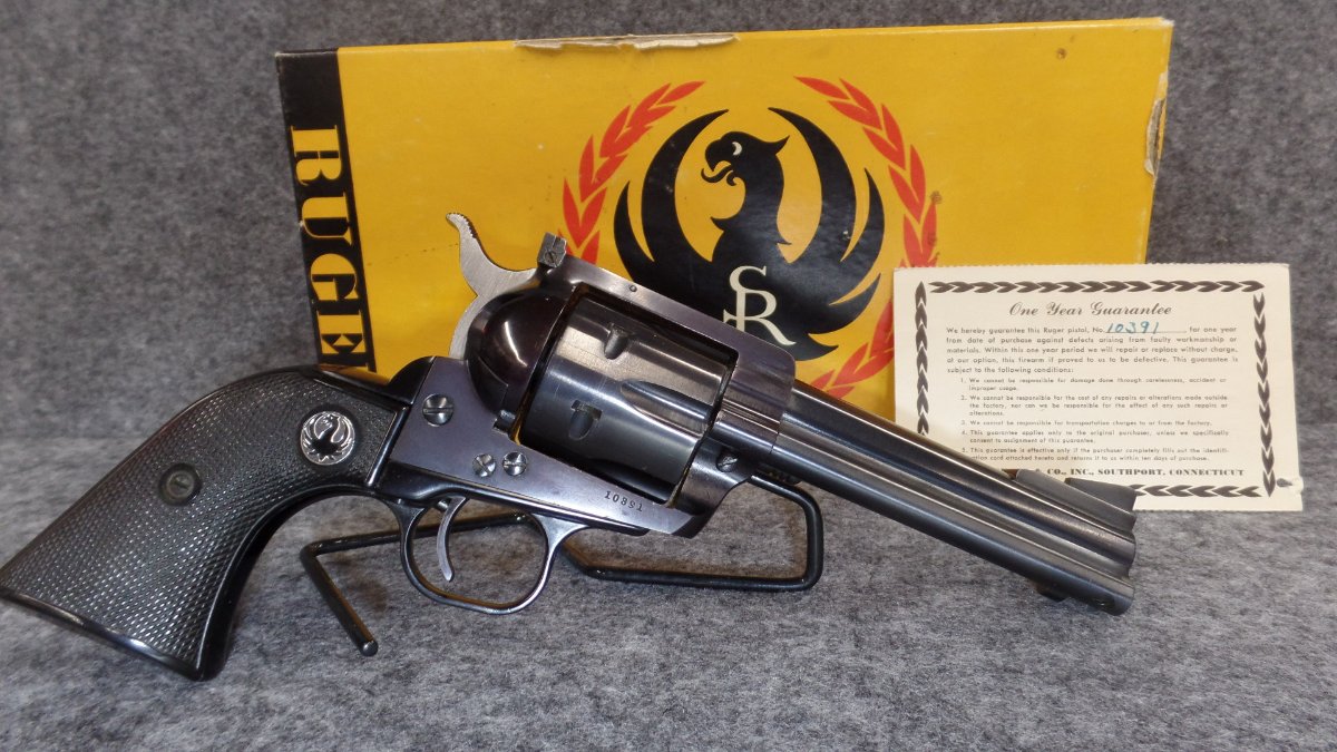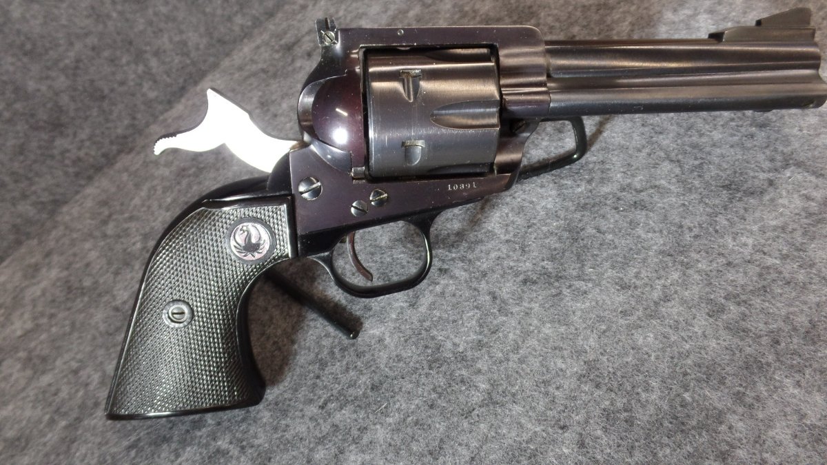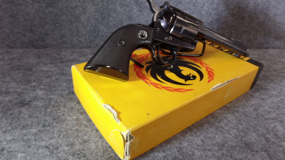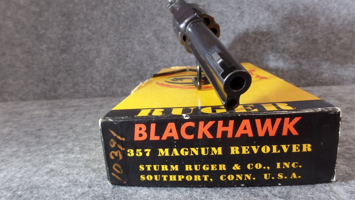 A nice 5 digit TYPE ll 357 BKH34 with the desirable "no catalog number" box. Box is serial numbered to the gun. The Ruger letter I received says shipped Sept. 1957. The frame has a bit of the purple look we all like.