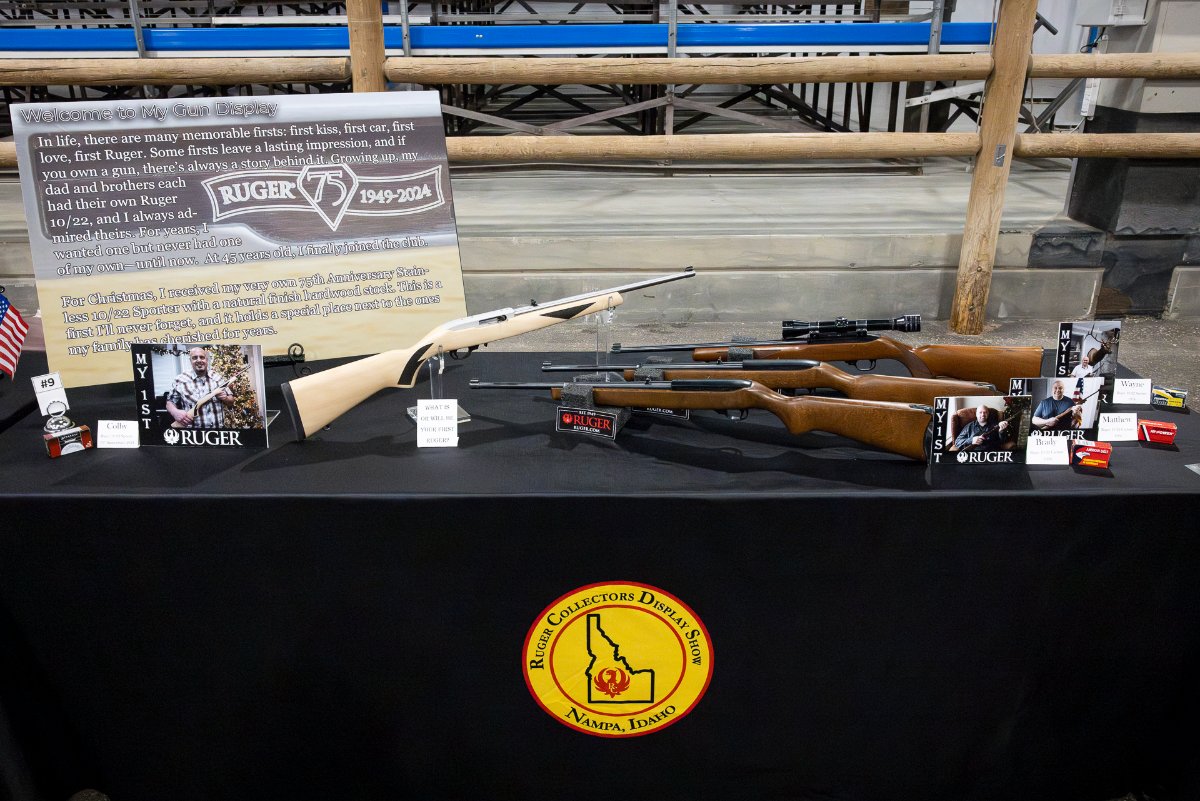 My display is about owning your first Ruger. In life, there are many memorable firsts: first kiss, first car, first love, first Ruger. Some firsts leave a lasting impression, and if you own a gun, there's always a story behind it. At 45 years old, I joined the club of owning the iconic Ruger 10/22. For Christmas, I received my very own 75th Anniversary Stainless 10/22 Sporter with a natural finish hardwood stock. This is a first I’ll never forget. My display shows my first Ruger as well as those of my Dad and brothers. As a form of reflection, I pose the question, " What is (or will be) your first Ruger?"