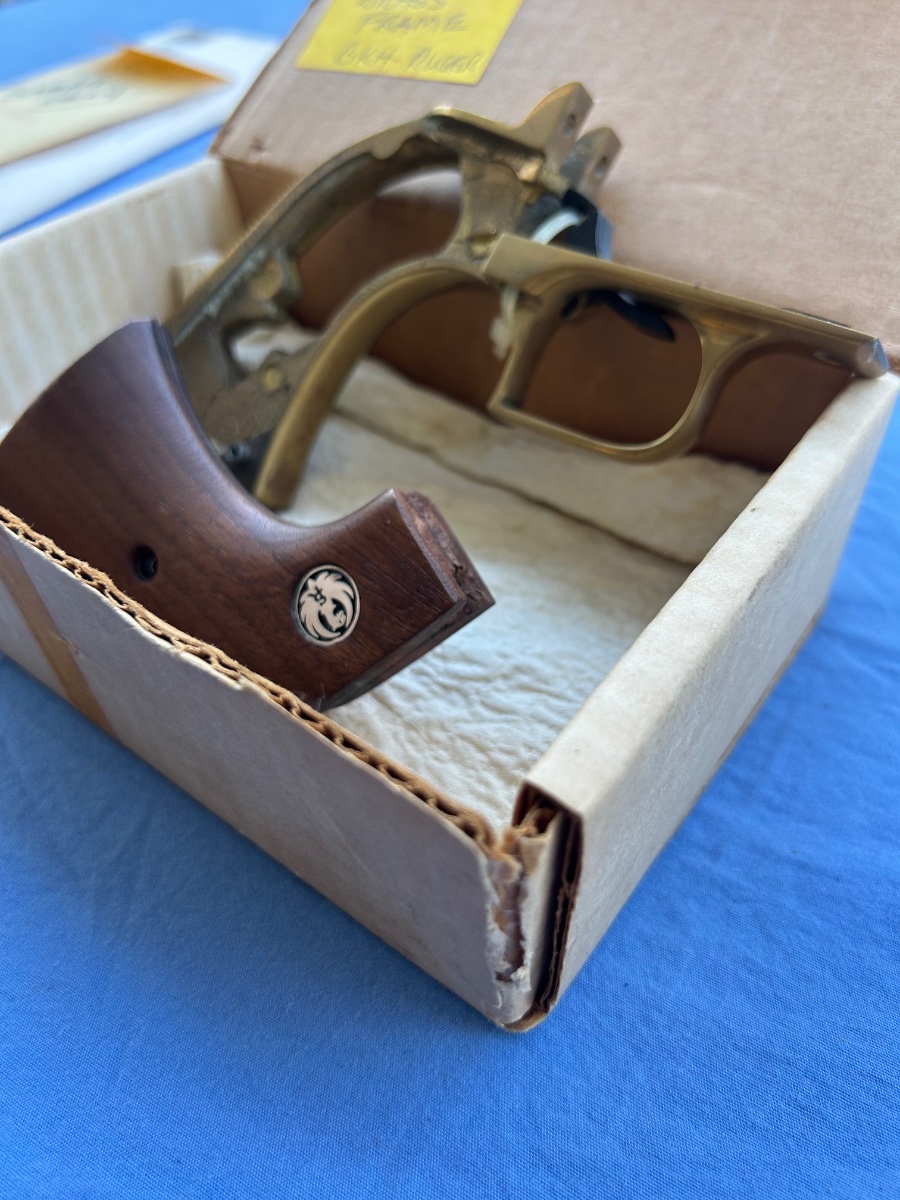 A great opportunity to buy a rare package. Brass frame in its box with trigger and grips, great deal for some member.
