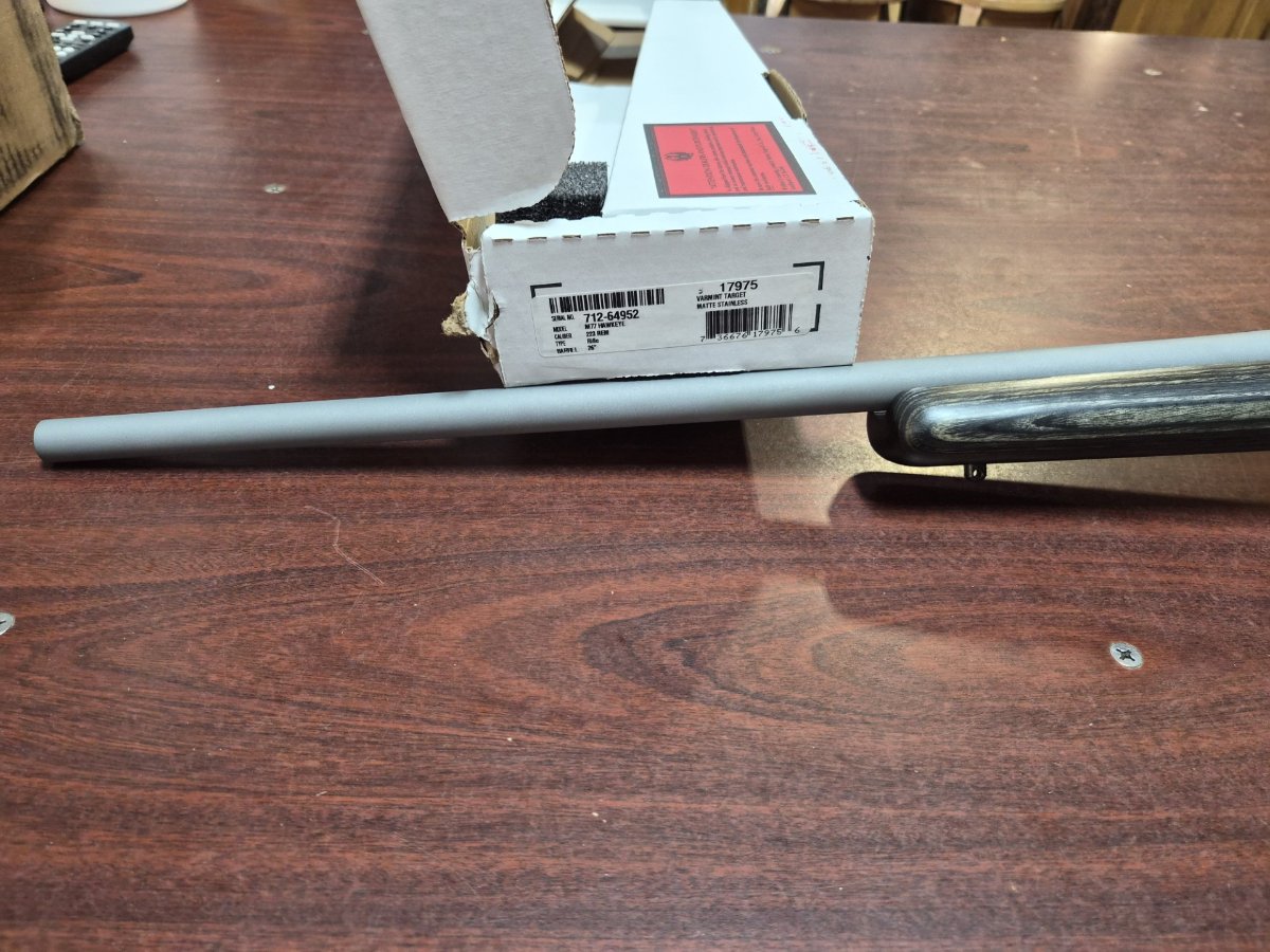 M77 HAWKEYE .223 VARMINT TARGET 26" BARREL. BLACK LAMINATED STOCK WITH MATTE STAINLESS FINISH.