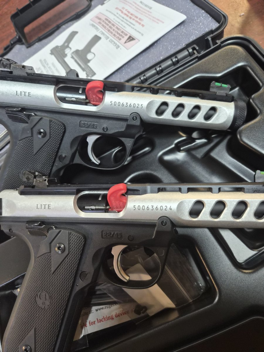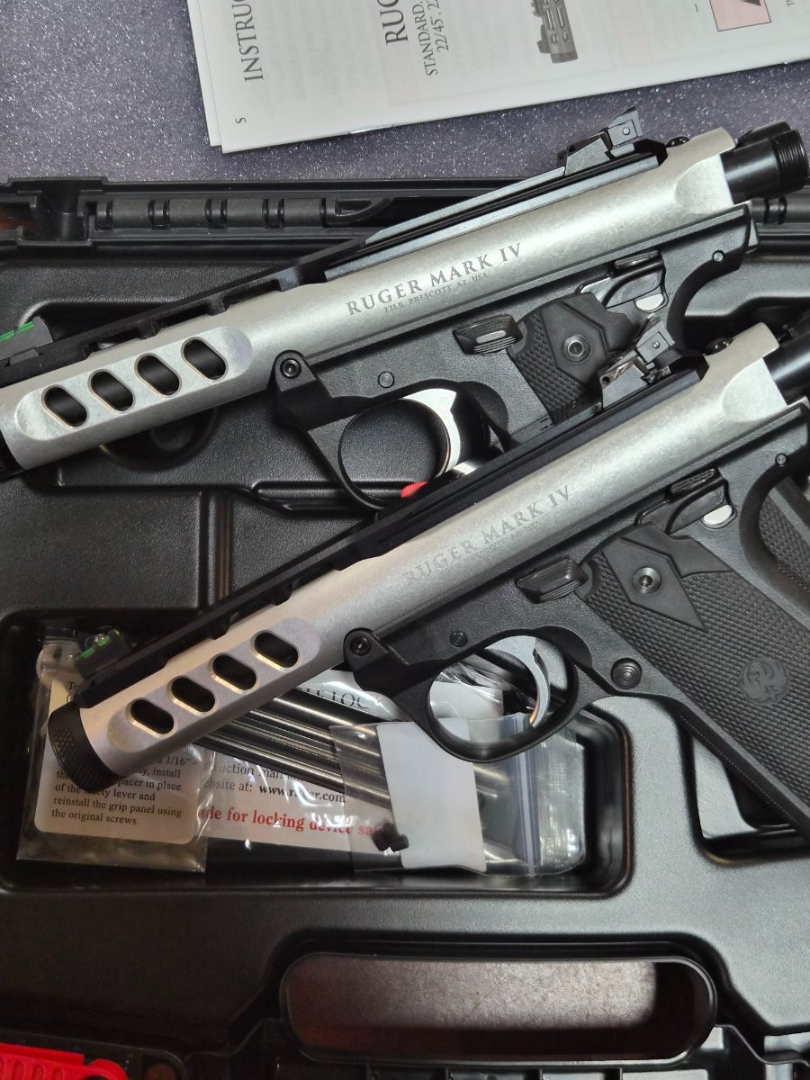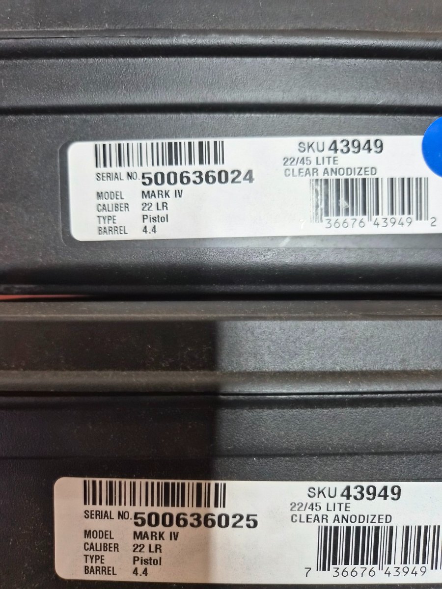 MKIV 22/45 LITES, CONSECUTIVE SERIAL NUMBERS. .22 CAL. SLAB-PORTED BARREL WITH HI-VIZ SIGHTS AND SILENCER READY THREADED BARREL.