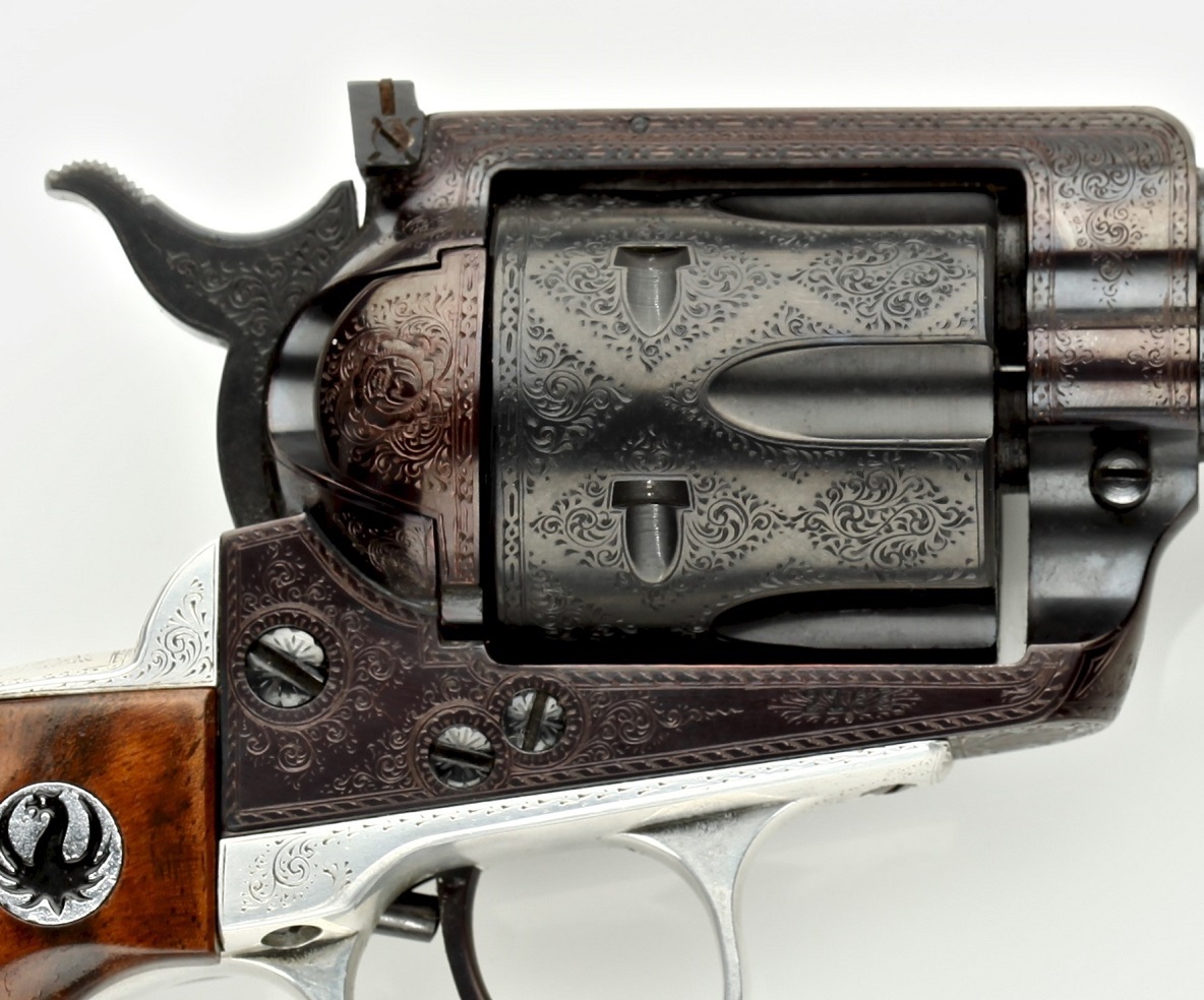 I think these pictures debunks the often stated notion that Charles Jerred was not an accomplished engraver, based on the examples of the RSSE. A reading of Compliments of Col. Ruger makes it clear that cost was the over riding factor and Jerred was pushed to turn out one revolver a day. The long discusion between WBR and CJ about whether the payment to Jerred would be $25 or $30 per revolver is fasinating and must be viewed with an eye to the business side of the equation.